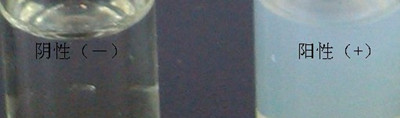 3min內,若上層出現黃白色渾濁,則可判定樣品中含有噻唑烷酮類物質,為陽性(+);否則判為陰性(-)。
