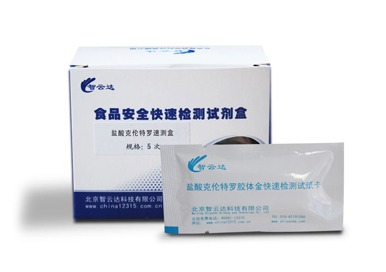 以上檢測方法在測定肉中是否含有“瘦肉精”時,感官方法只能作為初步判斷,結果不夠準確。氣象色譜法對儀器設備和試劑要求較高,不適合個人家庭測定,適合實驗室或檢測機構測定。為了實現快速、實時檢測動物性產品中的“瘦肉精”殘留,快速檢測法也逐漸在生產中應用。目前,智云達公司已研發生產的瘦肉精鹽酸克倫特羅快速檢測卡,運用競爭抑制免疫層析技術檢測動物尿液、組織和飼料中是否存在鹽酸克倫特羅。測定時間短,測定結果準確,操作攜帶方便,適合家庭、個人使用。