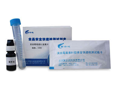 黃曲霉毒素 B1(Aflatoxin B1 簡寫為 AFB1)是目前已知的化學(xué)物質(zhì)中致癌性最強(qiáng)的一種。黃曲霉毒素 B1 對人和若干動物具有強(qiáng)烈的毒性,其毒性作用主要是對肝臟的損害。國家質(zhì)檢總局規(guī)定黃曲霉毒素 B1 是大部分食品的必檢項(xiàng)目之一。本品的檢測靈敏度為 5ng/ml(5ppb)。