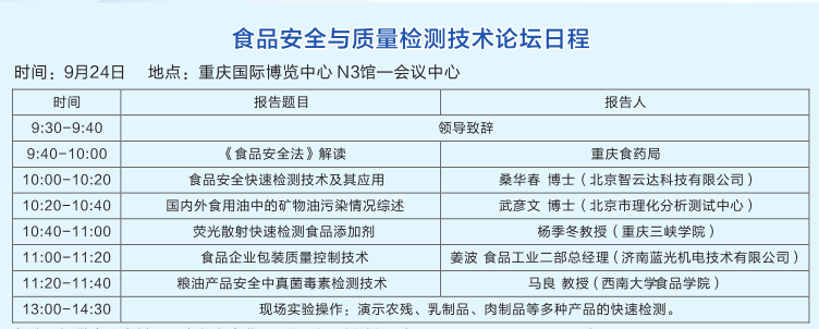 快檢培訓班已在北京舉辦九期,第十期與往常不同,在重慶。您一定很好奇,為什么這次培訓班安排在重慶,如果您關注我們的網站及微博、微信,您會發現,智云達受邀參加由中國儀器儀表學會牽頭的四家機械行業專業組織2015年9月22日-25聯合在重慶國際展覽中心共同舉辦“中國(重慶)智能制造技術裝備博覽會”(簡稱智博會)。為了讓客戶和學員有參與高質量技術論壇,學習更多除快檢常識外知識的機會,本次培訓班特改為參加食品安全與質量檢測技術論壇。